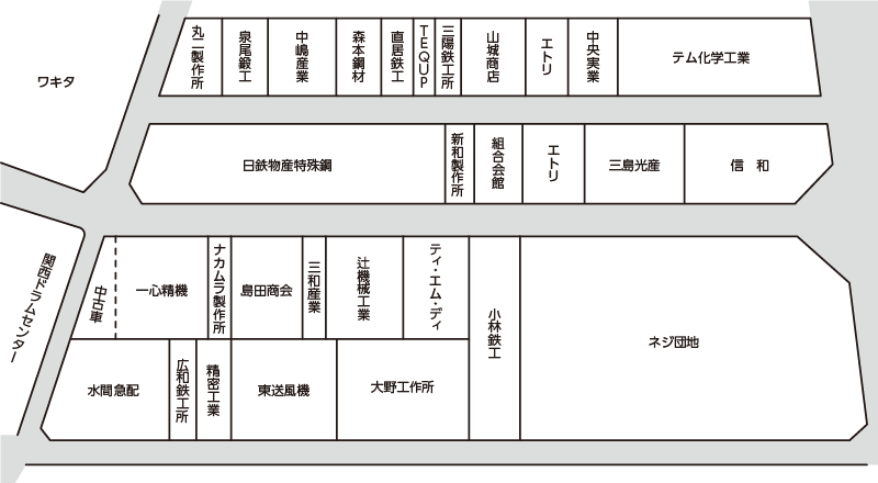 ホーム アクセス アクセス 車でお越しの方 高速道路をご利用の場合 阪神高速4号湾岸線 出口)南港中(大阪方面より) 南港南(堺方面より) 一般道路をご利用の場合 国道29号線北加賀屋交差点を南港通へ入り平林大橋西詰 電車でお越しの方 地下鉄四ツ橋線 住之江公園下車 ニュートラム南港東駅より徒歩10分 各社配置図 印刷用地図 (PDF/105KB)